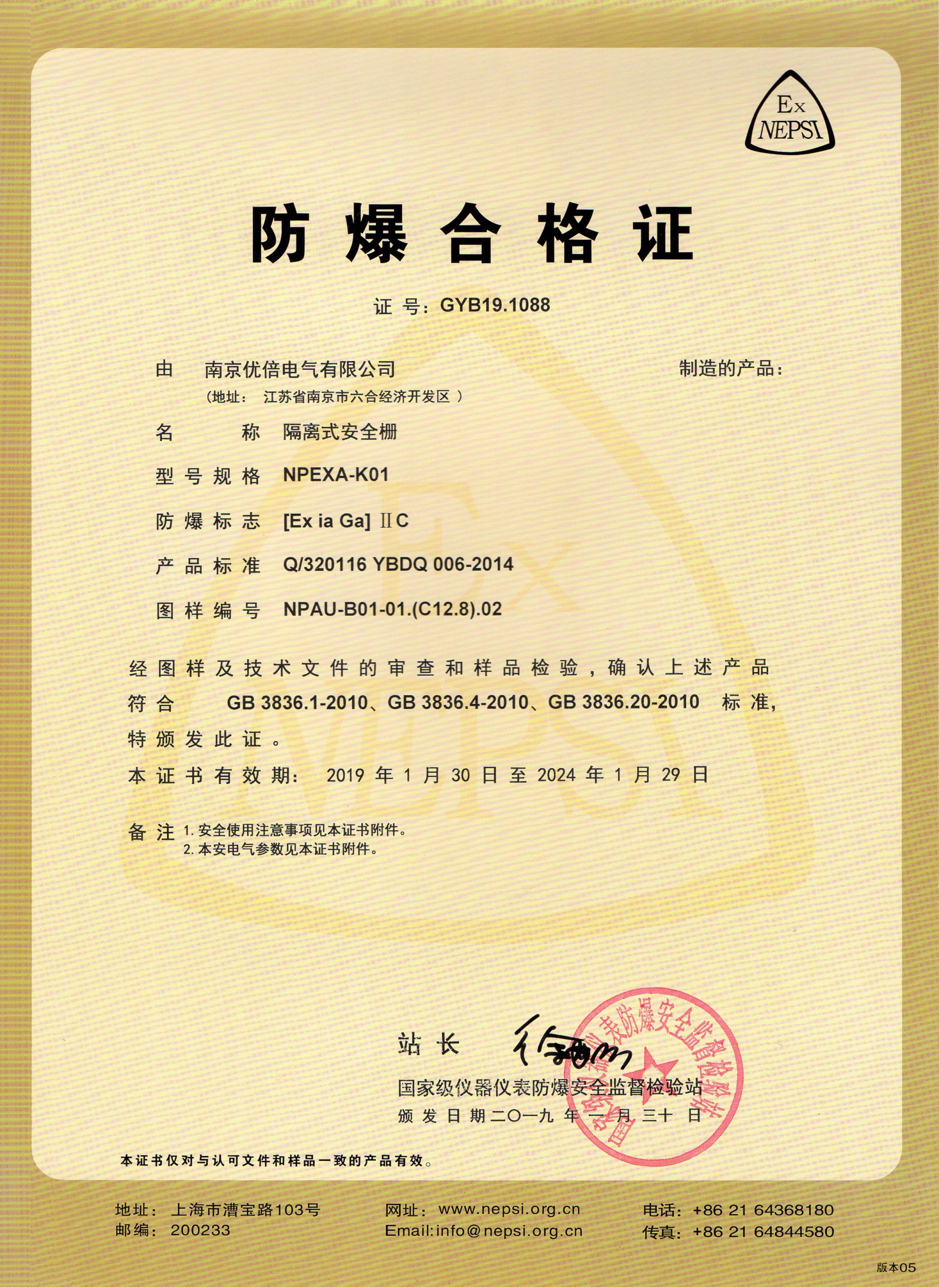 Suitable location Mounting in safe area, and connected to the intrinsic safety apparatus in hazardous area zone 0, zone 1, zone 2, ⅡA, ⅡB, ⅡC, T4 ~ T6