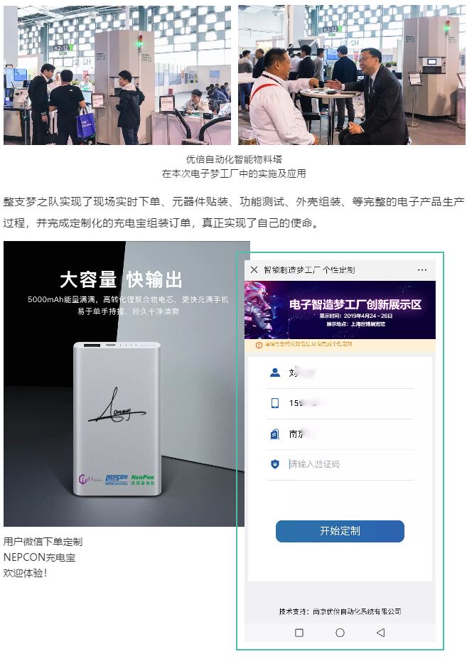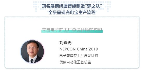 NEPCON China 2019深度貼合電子制造智慧化趨勢,推出2.0 升級版智能制造夢工廠展示線,由NEPCON 聯(lián)手同期強展S-FACTORY EXPO力邀清華大學SMT實驗室、優(yōu)倍自動化和眾多大咖企業(yè)強勢加盟,鼎力支持NEPCON夢工廠,72小時打造電子智造夢想“實驗室”:生產線為盡可能全面展示各生產設備互動互聯(lián)、真實協(xié)作的動態(tài)生產過程,集結了一大批電子制造領域實力展商,打造成智能制造“夢之隊”,完整展現(xiàn)充電寶的生產過程,讓觀眾身臨其境體驗智能制造獨特魅力。