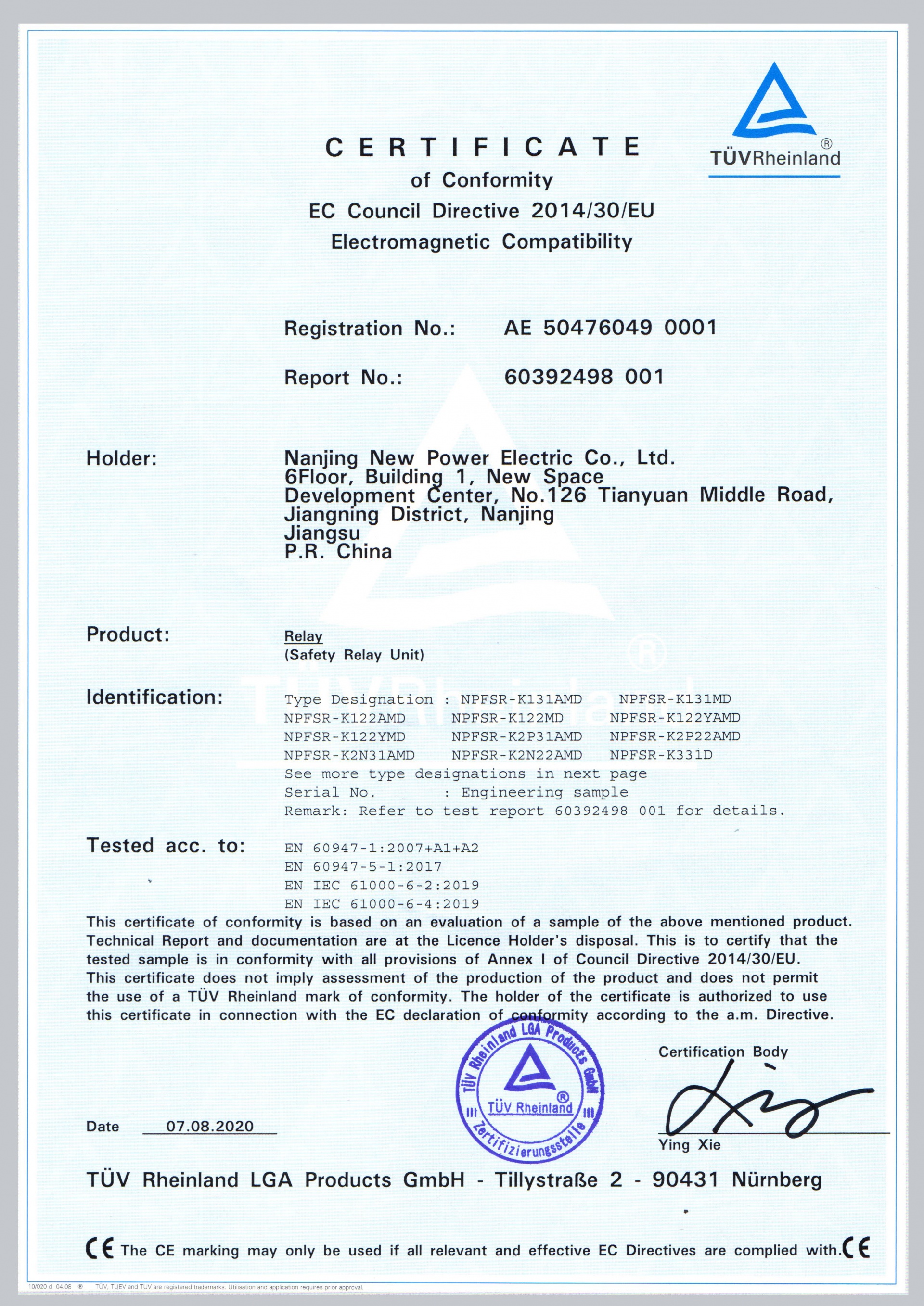 電磁兼容 符合IEC 60947, IEC 61326-3-1,IEC 61000-6-2, IEC 61000-6-4