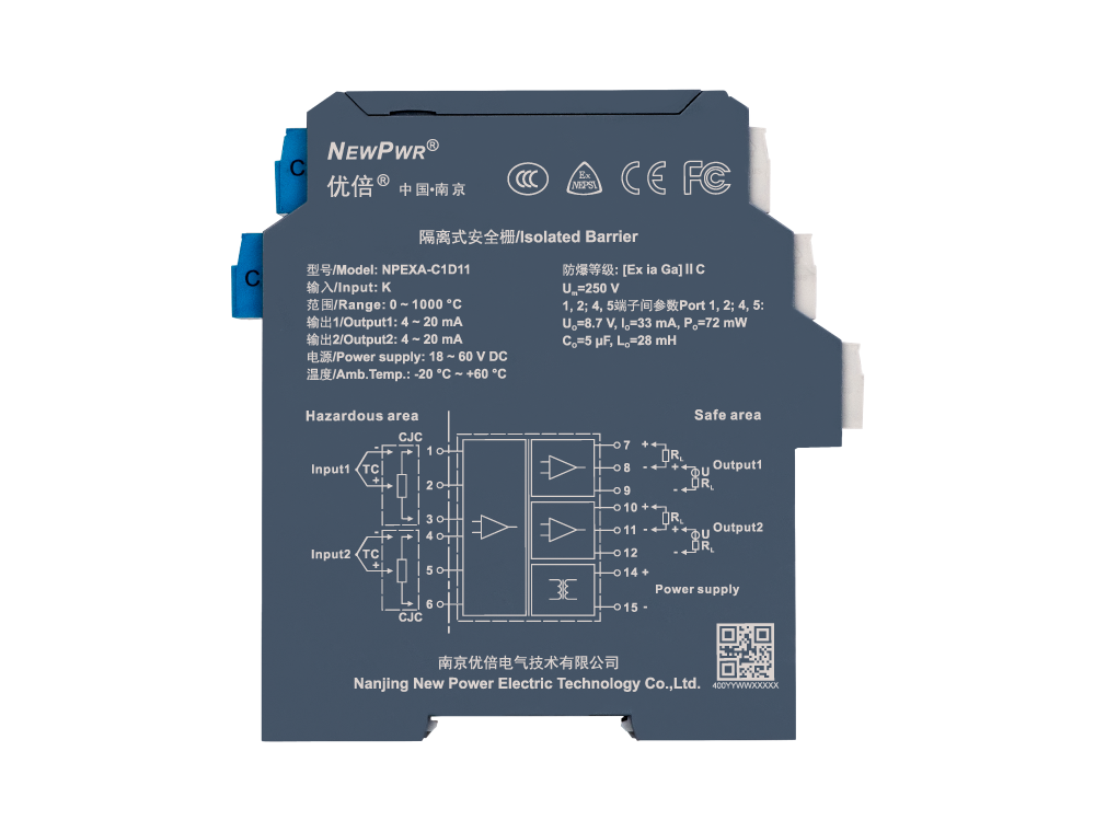 應(yīng)用場所 | 安裝于安全區(qū),可連接0區(qū)、1區(qū)、2區(qū);∥A、∥B、∥C、ⅢC;T4 ~ T6危險區(qū)的本安設(shè)備 |