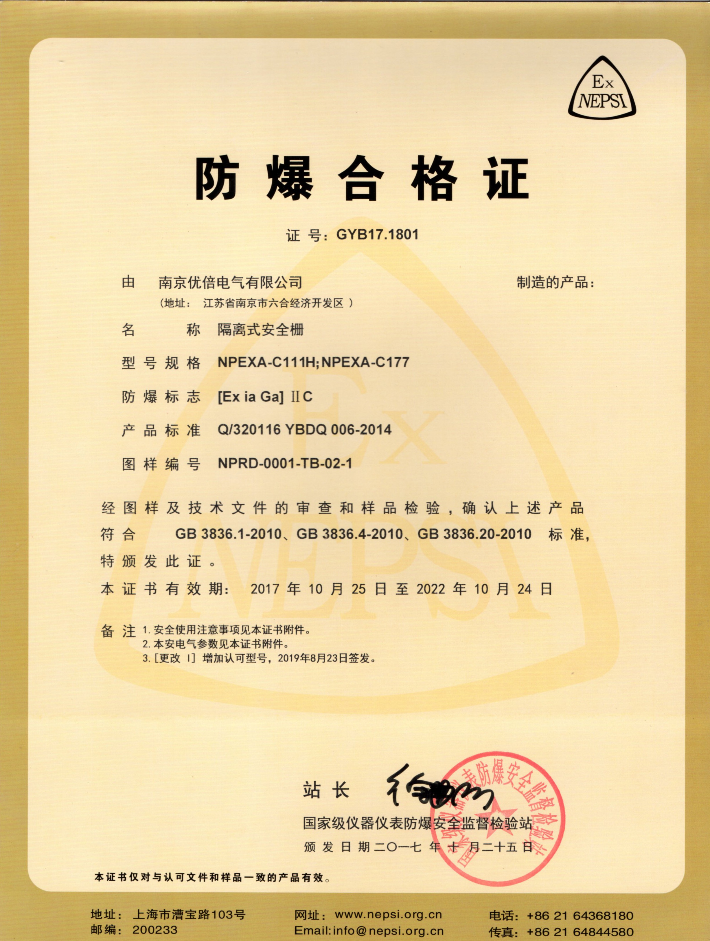| 應(yīng)用場所 | 安裝于安全區(qū),可連接0區(qū)、1區(qū)、2區(qū);ⅡA、ⅡB、ⅡC;T4 ~ T6危險區(qū)的本安設(shè)備 |